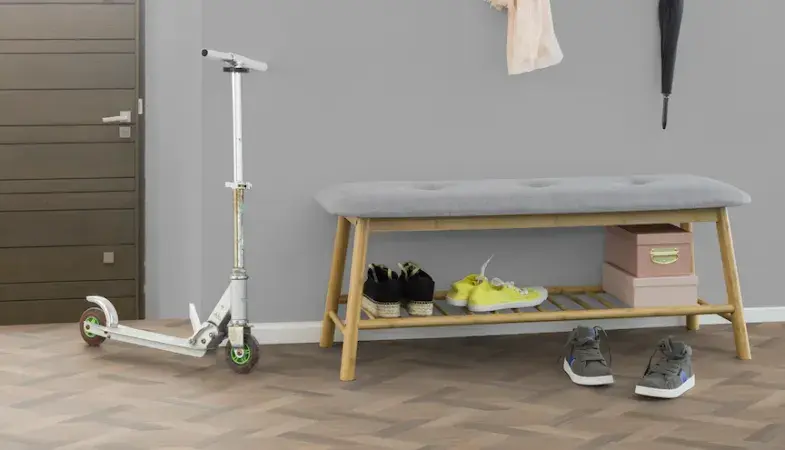 The entrance is a room that sees a lot of action: splashes from umbrellas, footprints made before taking off your shoes, rubbish bags put down while you find your keys... This area often gets dirty, so needs to be easy to clean. Gerflor PVC, with its revolutionary surface coatings, is ideal: thanks to the anti-stain treatment, and requiring little water or cleaning products, it is THE solution to make your entrance look beautiful in just a few minutes!